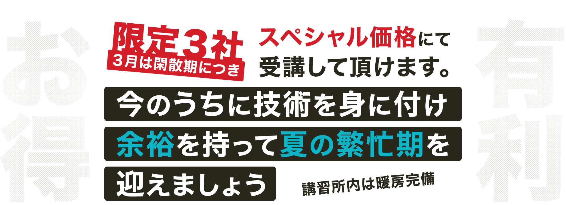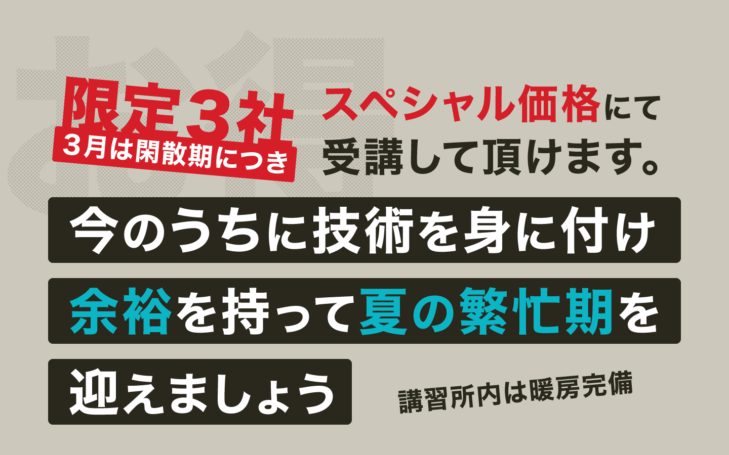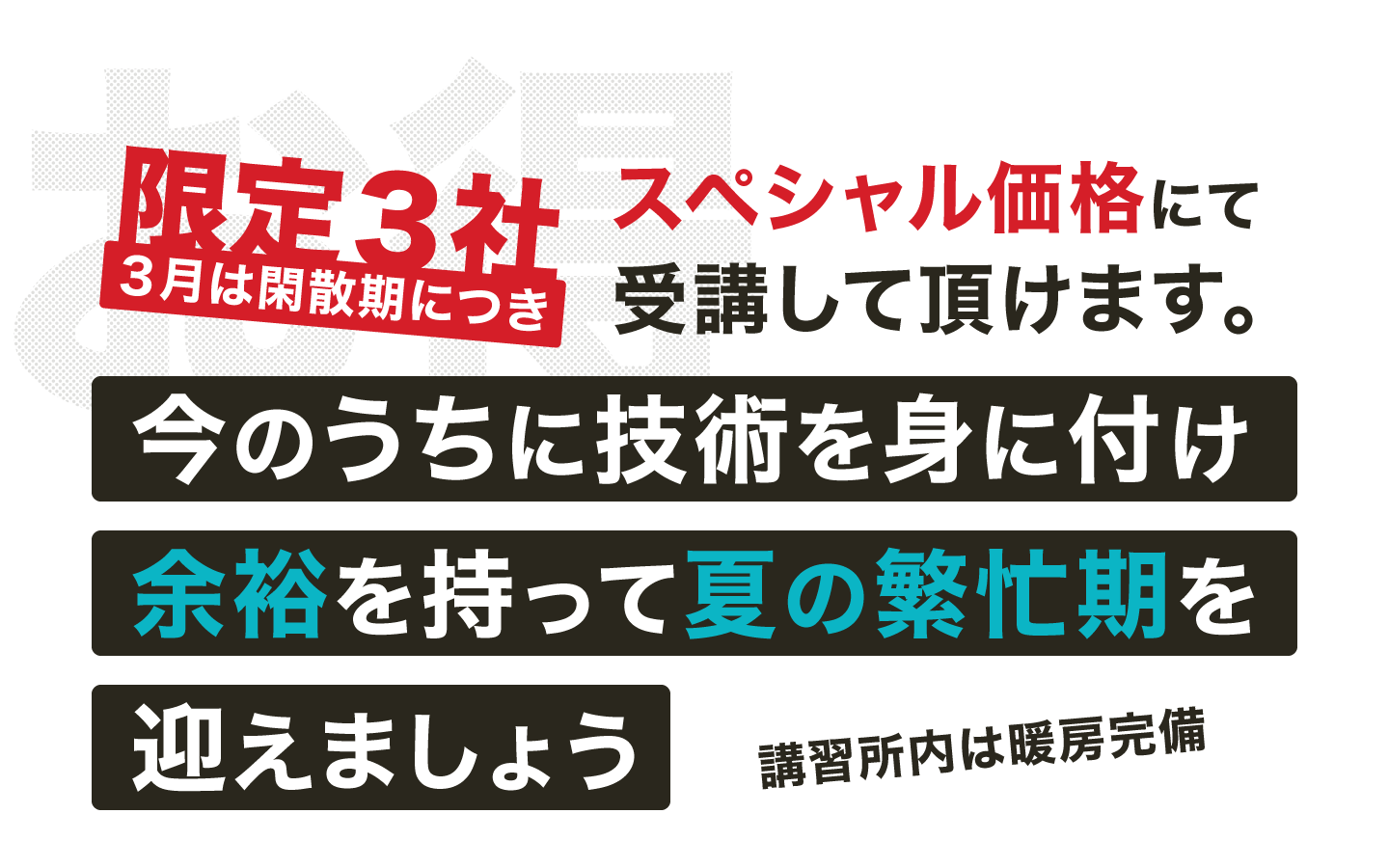 99,000円〈税込〉/1名/1日 【限定3社】2026年3月に受講の方1万円引き 88,000円〈税込〉/1名/1日 |